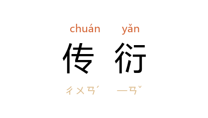 引清 刘大櫆 《程氏宗祠碑记》:“裔孙 正印 见而伤之,以遗绍自肩,谓世德传衍在予。”姚华 《论文后编》:“魏 晋 以来,传衍不絶。”李大钊 《新纪元》:“人类的生活,必须时时刻刻拿最大的努力,向最高的理想扩张传衍,流转无穷。”