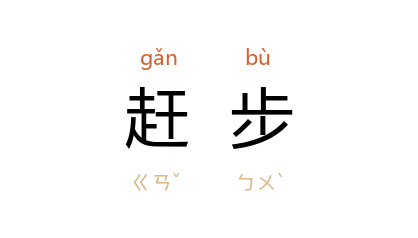 引《平妖传》第六回:“这里道士打了一回盹,不知早晚,只恐失了期约,急急的将双手抬着房门轻轻扯开,做个鹤步空庭,一脚一脚的赶步儿走去。”《三侠五义》第四九回:“二人赶步向前,刚然来至 宝善庄,乌鸦却不见了。”