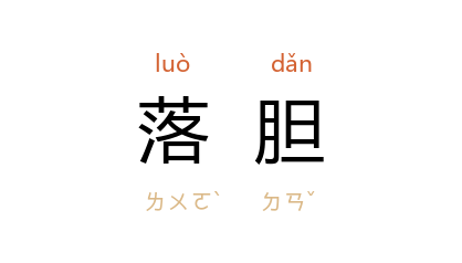 引《新唐书·温造传》:“吾夜入 蔡州 擒 吴元济,未尝心动,今日落胆於 温御史。”宋 范成大 《滟滪堆》诗:“舟师欹倾落胆过,石孽水祸吁难全。”