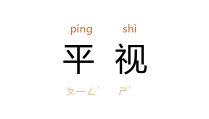 ⒈ 目光平行向前,两眼平着向前看。
