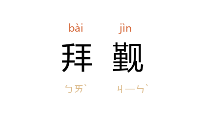 引《晋书·温峤传》:“公自还輦轂,入辅朝政,闕拜覲之礼,简人臣之仪,不达圣心者莫不於邑。”唐 薛用弱 《集异记·王四郎》:“向居 王屋山 下洞,今将往 峨嵋山,知叔到此,故候拜覲。”