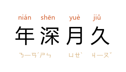 ⒉ 也说“年深日久”、“年深岁久”、“年久月深”