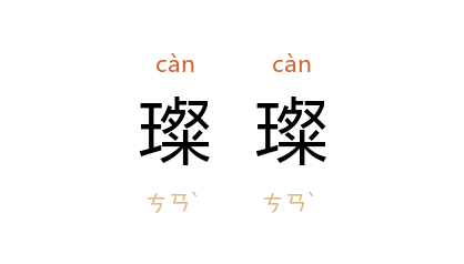 引唐 白居易 《黑龙饮渭赋》:“气默默以黯黯,光璨璨而烂烂。”宋 梅尧臣 《送梵才吉上人归天台》诗:“城霞与琪树,璨璨助诗才。”