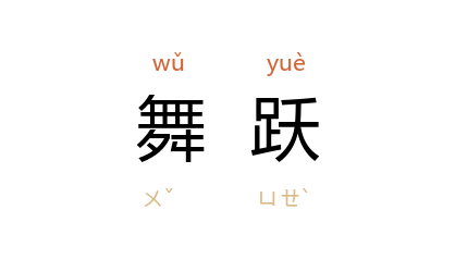 引《资治通鉴·唐宣宗大中三年》:“河 陇 老幼千餘人诣闕,己丑,上御 延喜门 楼见之,欢呼舞跃,解胡服,袭冠带,观者皆呼万岁。”明 冯梦龙 《智囊补·兵智·高仁厚》:“此皆百姓心上事,尚书尽知而赦之,其谁不舞跃听命。”
