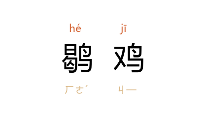 ⒈ 雉属。较雉为大,黄黑色,头有毛角如冠,性猛好斗,至死不却。