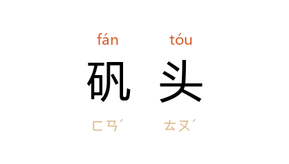⒈ 山水画中山顶上的石块。因其形状如矾石顶部的结晶,故称为「矾头」。