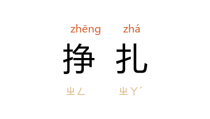 ⒈ (挣,今读zhēng)用力支撑或摆脱。