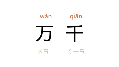 ⒈ 形容很多、许多。宋·范仲淹〈岳阳楼记〉:「余观夫巴陵胜状,在洞庭一湖,衔远山,吞长江,浩浩汤汤,横无际涯,朝晖夕阴,气象万千,此则岳阳楼之大观也。」也作「千万」。