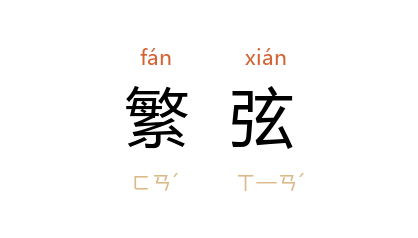 引汉 蔡邕 《琴赋》:“于是繁絃既挹,雅韵復扬。”唐 王维 《鱼山神女祠歌·送神曲》:“悲急管兮思繁弦,神之驾兮儼欲旋。”