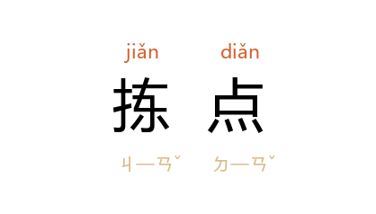 引《唐律疏议·擅兴·拣点卫士征人》:“诸拣点卫士取捨不平者……拣点之法,财均者取强,力均者取富,财力又均,先取多丁。”唐 赵元一 《奉天录》卷三:“田悦 因此得展逆谋,伪称恩制,拣点三军。”宋 范仲淹 《奏乞选河北州县官员》:“国家今於 河 北点得义勇乡兵二十万,亦如 唐 之有府兵也。然所置官属及拣点法制,即与 唐 末类。”