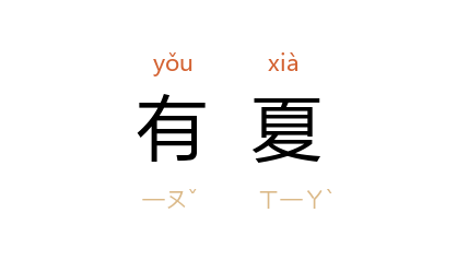 ⒈ 古时习惯于朝代之上加「有」字,故称夏朝为「有夏」。