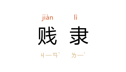 引晋 傅咸 《禁奢上书》:“今之贱隶,乘轻驱肥。”宋 陈亮 《酌古论·苻坚》:“以有衅攻无衅,虽妇人孺子,末工贱隶,皆知其不可。”明 梁辰鱼 《红线女》第四折:“阴力见诛,罚为女子,使身居贱隶,气禀凡俚。”