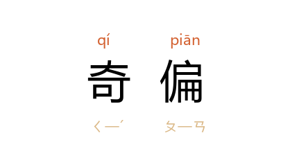 引《文选·邹阳<于狱中上书自明>》:“此二国岂拘於俗,牵於世,繫奇偏之辞哉!”张铣 注:“奇,独也。”金 王若虚 《<新唐书>辨上》:“或劝 东坡 重修《三国志》,而 坡 自谓非当行家,不敢当也。以 祁 辈奇偏之才而付之斯事,非其宜矣。”