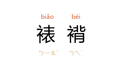 ⒈ 用纸、布或丝织品为衬底,将书画等黏糊起来,以便于收藏或展示。以书画向外,称为「裱」,做衬底的托背,称为「褙」。宋·吴自牧也作「背褾」、「表背」、「裱揹」、「裱背」、「褾背」。