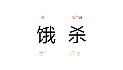 引《后汉书·袁绍传》:“袁绍 孤客穷军,仰我鼻息,譬如婴儿在股掌之上,絶其哺乳,立可饿杀。”《续资治通鉴·宋真宗咸平五年》:“又 莫州 奏饿杀一十六口, 沧州 奏全家饿死一十七口。”