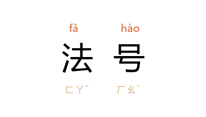 ⒈ 也称“法名”、“戒名”。佛教徒皈依佛门或受戒后由师父特取的名字。如南朝梁娄德素,受戒后法号为慧约。