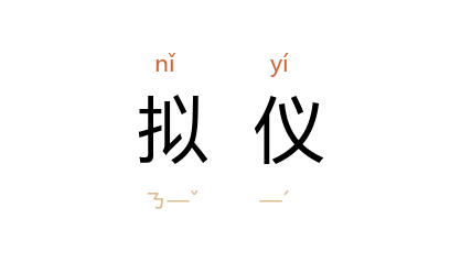 引《后汉书·孔融传》:“刘表 桀逆放恣,所为不轨,至乃郊祭天地,拟仪社稷。”北魏 杨衒之 《洛阳伽蓝记·永明寺》:“西域远者,乃至 大秦国 ……衣服车马,拟仪中国。”章炳麟 《论式》:“九流之言,拟仪以成变化者,皆论之儕。”