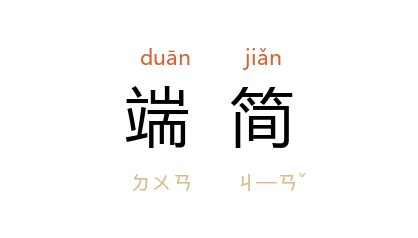 引《南齐书·徐孝嗣传》:“幼而挺立,风仪端简。”《宋史·曹彬传》:“彬 执礼益恭,公府讌集,端简终日,未尝旁观。”
