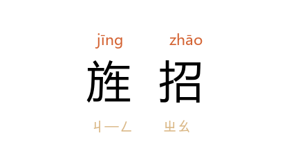 ⒈ 以旌招之。谓征召贤士。语本《孟子·万章下》:“敢问招虞人何以?曰:'以皮冠。庶人以旃,士以旗。大夫以旌。'”