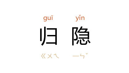 引唐 李洞 《送轩辕先生归罗浮》诗:“旧山归隐浪摇青,緑鬢山童一帙经。”宋 苏轼 《次韵子由送千之侄》:“白髮未成归隐计,青衫儻有济时心。”鲁迅 《且介亭杂文二集·隐士》:“登仕,是啖饭之道,归隐,也是啖饭之道。”