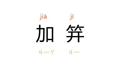 ⒈ 谓以簪束发。古时女子十五岁始加笄,表示成年。