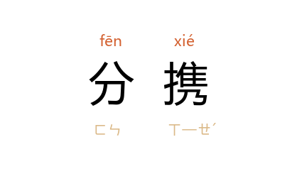 引唐 李商隐 《饮席戏赠同舍》诗:“洞中屐响省分携,不是花迷客自迷。”宋 吴文英 《风入松》词:“楼前緑暗分携路,一丝柳,一寸柔情。”清 秋瑾 《失题》诗:“惜别阶前雨,分携水上萍。”