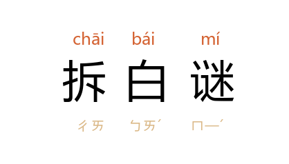 ⒈ 用拆字法编的谜语。 清 蒲松龄 《聊斋志异·白于玉》:“出书一函,付嘱曰:‘余有故人,与大人同里,烦一致寒暄。’问:‘何姓名?’答曰:‘王林。’……持以告母,母执书以泣,曰:‘此汝父家报也。参见“拆白道字”。