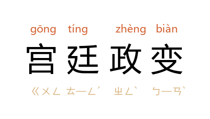 ⒈ 原指帝王宫廷内发生篡夺王位的事件,现在一般用来指某个国家统治集团少数人从内部采取某种方式夺取国家政权。