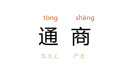 ⒈ 本指商品买卖的行为。后指与外国互相贸易。唐˙孔颖达·正义:「通商:通商贩之路,令货利往来也。」也作「通市」。
