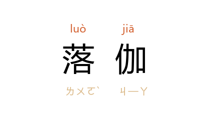 引元 马致远 《汉宫秋》第二折:“他比那 落伽山 观自在 无杨柳,见一面得长寿。”清 蒲松龄 《聊斋志异·西僧》:“西土传中国名山四:一 泰山,一 华山,一 五臺,一 落伽 也。”