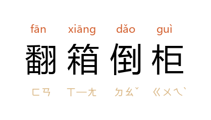 例如:「你翻箱倒柜的,到底在找些什么?」
