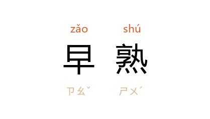 ⒉ 指人的身体发育成熟较早。亦特指思想成熟早。