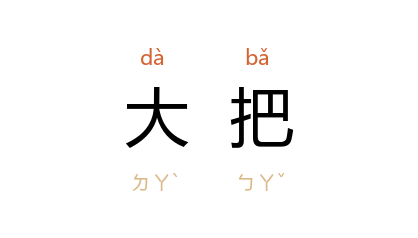 例如:「因为他家富有,用起钱来,大把大把的花,一点也不心疼。」