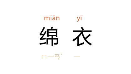 ⒊ 指装棉絮的衣服。绵,通“棉”。