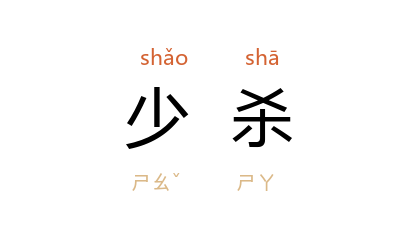 引明 胡应麟 《少室山房笔丛·经籍会通二》:“凡道家之书,始於 周,盛於 汉,极於 晋 唐 ;凡 释氏 之书,始於 汉,盛於 梁,极於 隋 唐,而皆少杀於 宋 之南渡。”明 沉德符 《野获编·科场·太座师》:“乡会座主,体严自难假借,至座主之师,则少杀矣。”