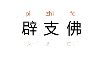 ⒈ 佛教语。梵语辟支迦佛陀的略称。三乘中的中乘圣者。因其观十二因缘法而得道,故亦意译为“缘觉”;因其身出无佛之世,潜修独悟,又意译为“独觉”。