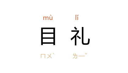 引《汉书·叙传上》:“上以 伯 新起,数目礼之。”颜师古 注:“目视而敬之。”《后汉书·江革传》:“﹝ 革 ﹞每朝会,帝常使虎賁扶侍,及进拜,恒目礼焉。”郭沫若 《喀尔美萝姑娘》:“她在人群中突然发见了我,她的眼睛分外生了光彩,笑着向我目礼起来。”