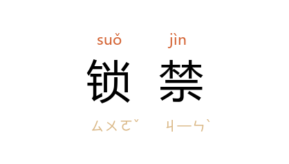 引《新唐书·刑法志》:“死罪校而加杻,官品勋阶第七者,锁禁之。”《二刻拍案惊奇》卷七:“他家父母知道,拿回家去痛打一顿,锁禁在书房中。”清 黄六鸿 《福惠全书·刑名·监禁》:“若流徙等犯,彼原係活罪,候详允发遣,止宜锁禁外监。”