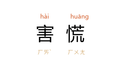 引元 关汉卿 《四春园》第二折:“小姐约我赴期,不知什么人将 梅香 杀了,我害慌也,家中见父亲去。”元 无名氏 《黄鹤楼》第四折:“我父亲恼了,扯出剑来要杀我,我害慌趓避了。”《儿女英雄传》第三五回:“他见那位长官不是个寻常装束,不道那‘浩然正气’也就有些害慌了,连忙站起来,避在一旁。”