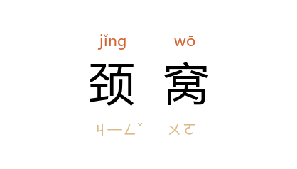 引郭沫若 《北伐途次》二二:“枪弹是从后头骨的左侧打进去的,从后颈窝下穿出。”沈从文 《新与旧》:“﹝战兵﹞走近罪犯身后,稍稍估量,手拐子向犯人后颈窝一擦,发出个木然的钝声,那汉子头便落地了。”