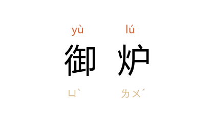 引唐 柳宗元 《省试观庆云图诗》:“抱日依龙袞,非烟近御炉。”前蜀 薛昭蕴 《小重山》词之二:“忆昔在 昭阳,舞衣红綬带,绣鸳鸯,至今犹惹御炉香。”宋 黄庭坚 《乞姚花》诗之二:“乞取好花天上看,宫衣黄带御鑪风。”