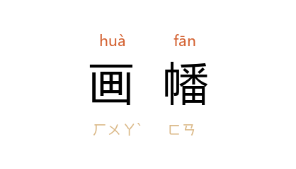 ⒈ 亦作“画旛”。有画饰的长方而下垂的旗子。