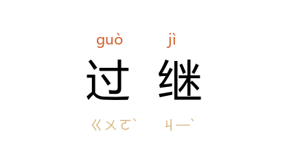 ⒈ 自己没有儿子而以兄弟、亲戚或他人之子为后嗣,称为「过继」。也作「过房」。
