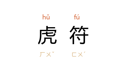 英语tiger tally (a two-piece object made in the shape of a tiger, used in ancient China as proof of authority. One half of a tally could be issued to a military officer and this would be matched with the other half when verification was required.)