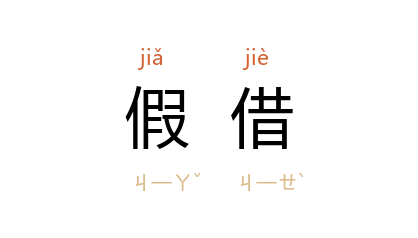 英语to make use of, to use sth as pretext, under false pretenses, under the guise of, masquerading as, lenient, tolerant, loan character (one of the Six Methods 六書|六书 of forming Chinese characters), character acquiring meanings by phonetic association, also called phonetic loan