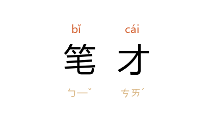 引《世说新语·文学》“太叔 广” 刘孝标 注引 晋 王隐 《晋书》:“虞 与 广 名位略同, 广 长口才, 虞 长笔才,俱少政事。”南朝 梁 刘勰 《文心雕龙·时序》:“庾 以笔才逾亲, 温 以文思益厚。”唐 刘知几 《史通·杂说下》:“昔 魏 史称 朱异 有口才, 挚虞 有笔才。”