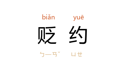 引《三国志·魏志·文帝纪》“大饗六军及 譙 父老百姓於邑东” 裴松之 注引 晋 孙盛 曰:“虽心存贬约,虑在经纶,至於树德垂声,崇化变俗,固以道薄於当年,风頽於百代矣。”《南史·后妃传论》:“高皇 受命,宫禁贬约,衣不文绣,色无红采,永巷贫空,有同素室。”明 刘元卿 《贤奕编·闲钞上》:“国封 岁时入见母后,见二侍婢老且陋,怪其过自贬约。”
