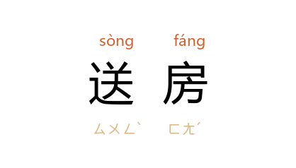 引清 史震林 《西青散记》卷一:“南山樵子新娶妻,送房不用银钱贺。”胡朴安 《中华全国风俗志·江苏·淮安风俗志》:“淮安 闹房之时间,则在黄昏之后,以送房为限制。”