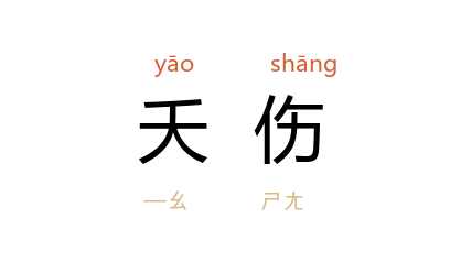 引《战国策·秦策三》:“生命寿长,终其年而不夭伤。”三国 魏 阮籍 《咏怀》之四四:“荧荧桃李花,成蹊将夭伤。”《晋书·艺术传·幸灵》:“凡草木之夭伤於山林者,必起理之;器物之倾覆於途路者,必举正之。”