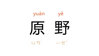 ⒈ 旷野;没有树林、建筑物或巨大岩石的大片土地。